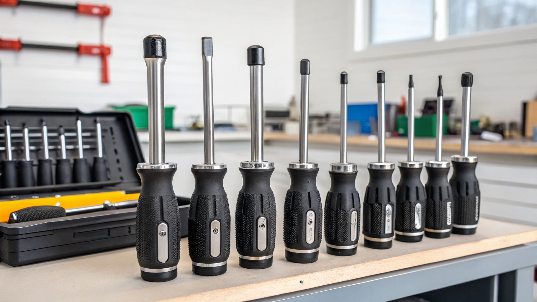 “Various sizes of nut drivers used by electricians”)