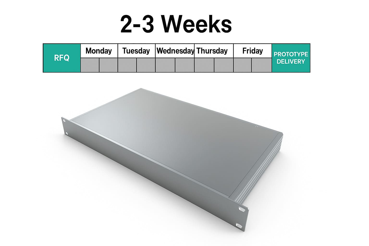 For a custom rack enclosure, expect a quote with DFM feedback in 24 hours. After approval, prototype production takes 7-10 business days. With express shipping11, a realistic total timeline is about two to three weeks from submission to delivery.