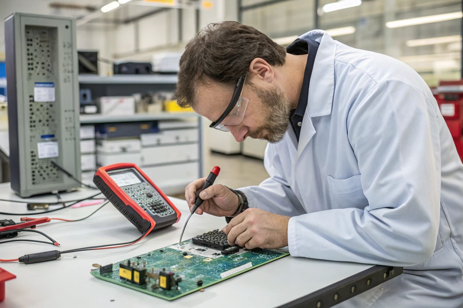 Engineer diagnosing a controller failure”)
